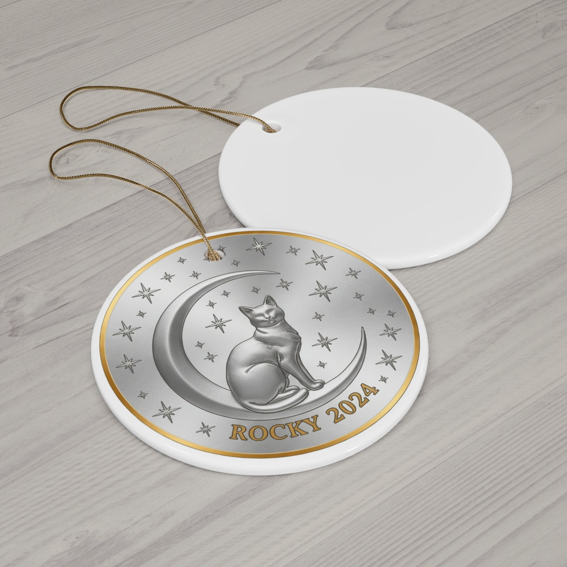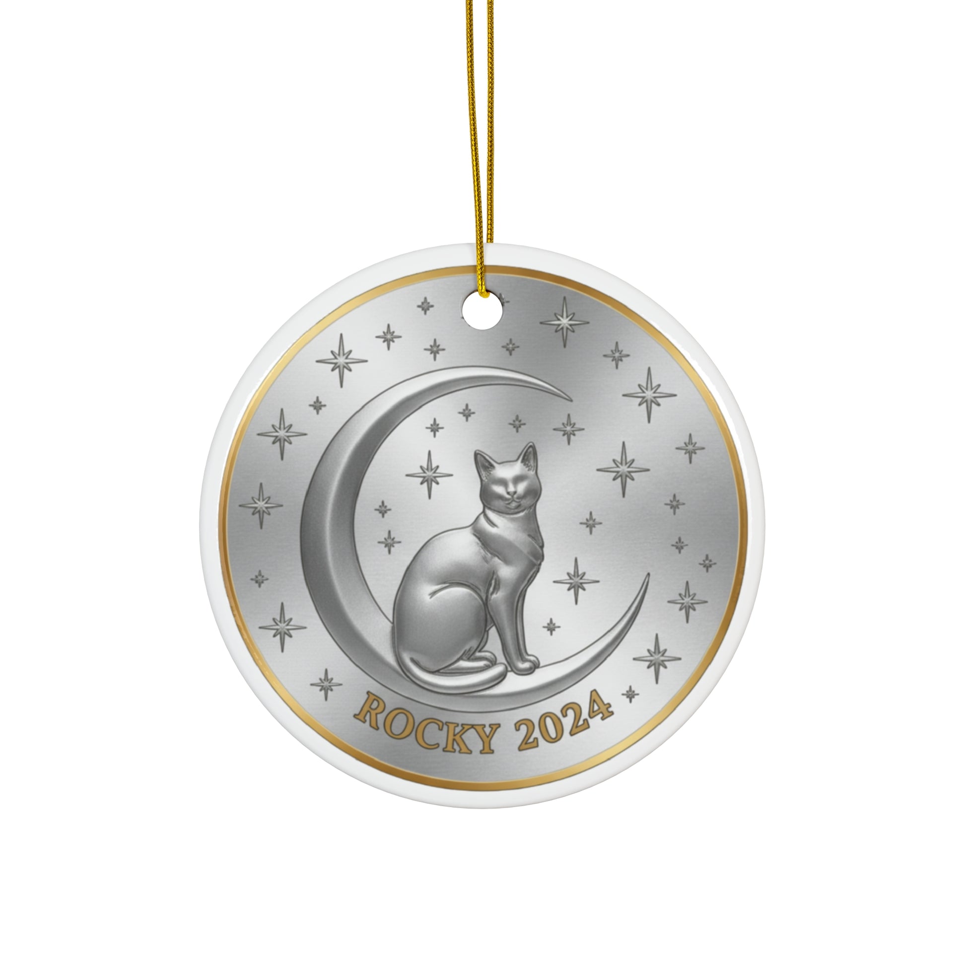 Cat on Crescent Moon Christmas Ornament – Personalized Pet Name & Year Keepsake