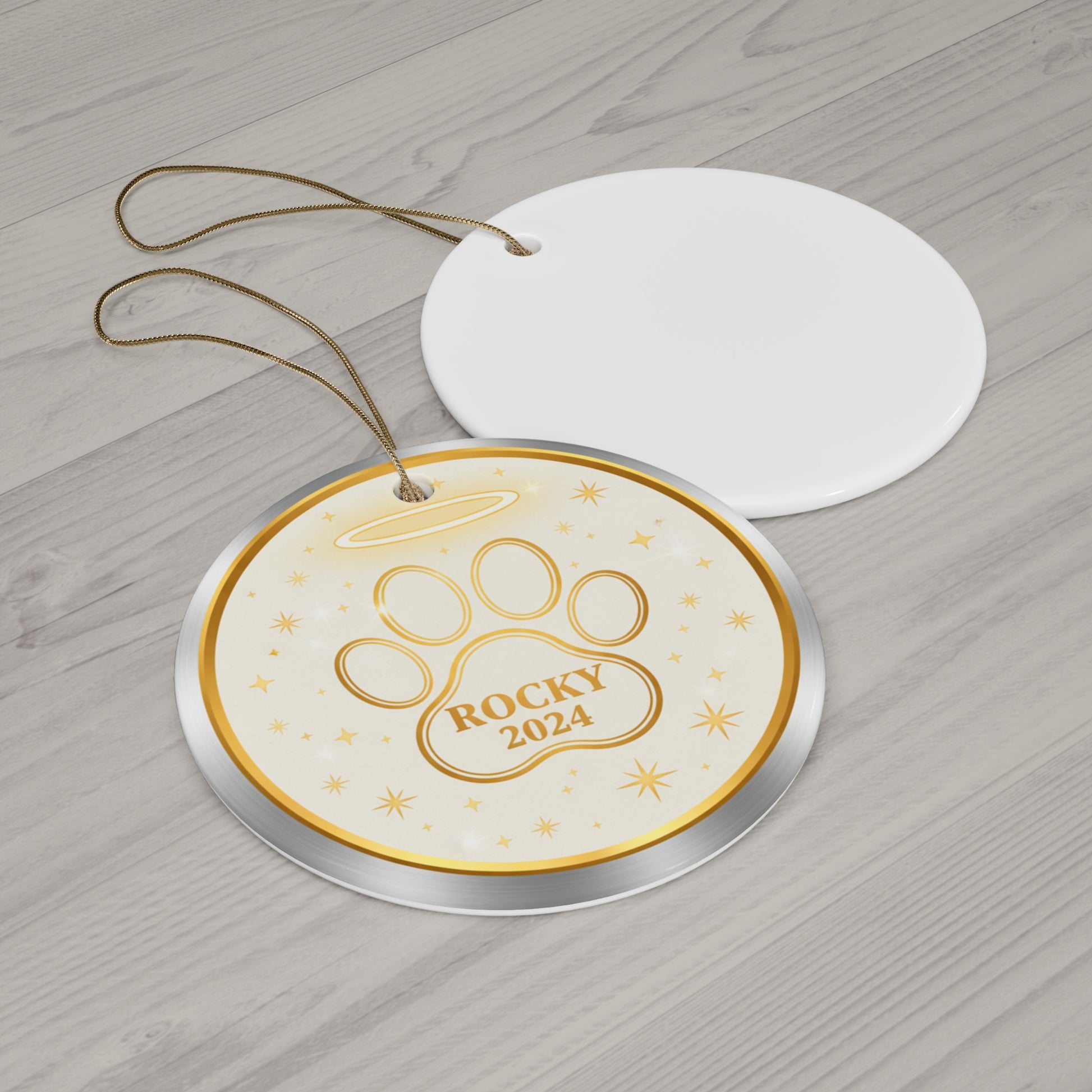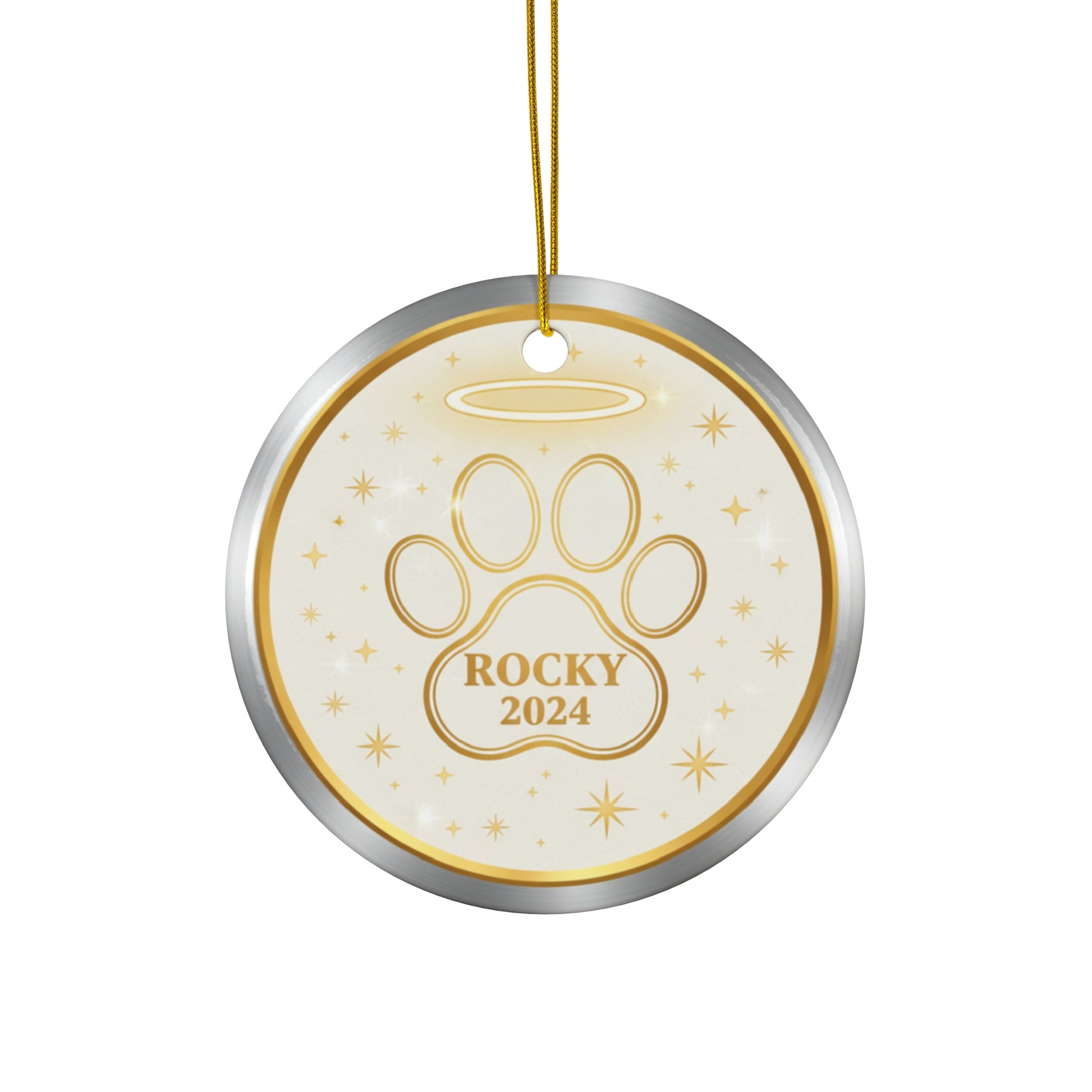 Double Paw Print Christmas Ornament – Personalized Pet Name & Year Keepsake