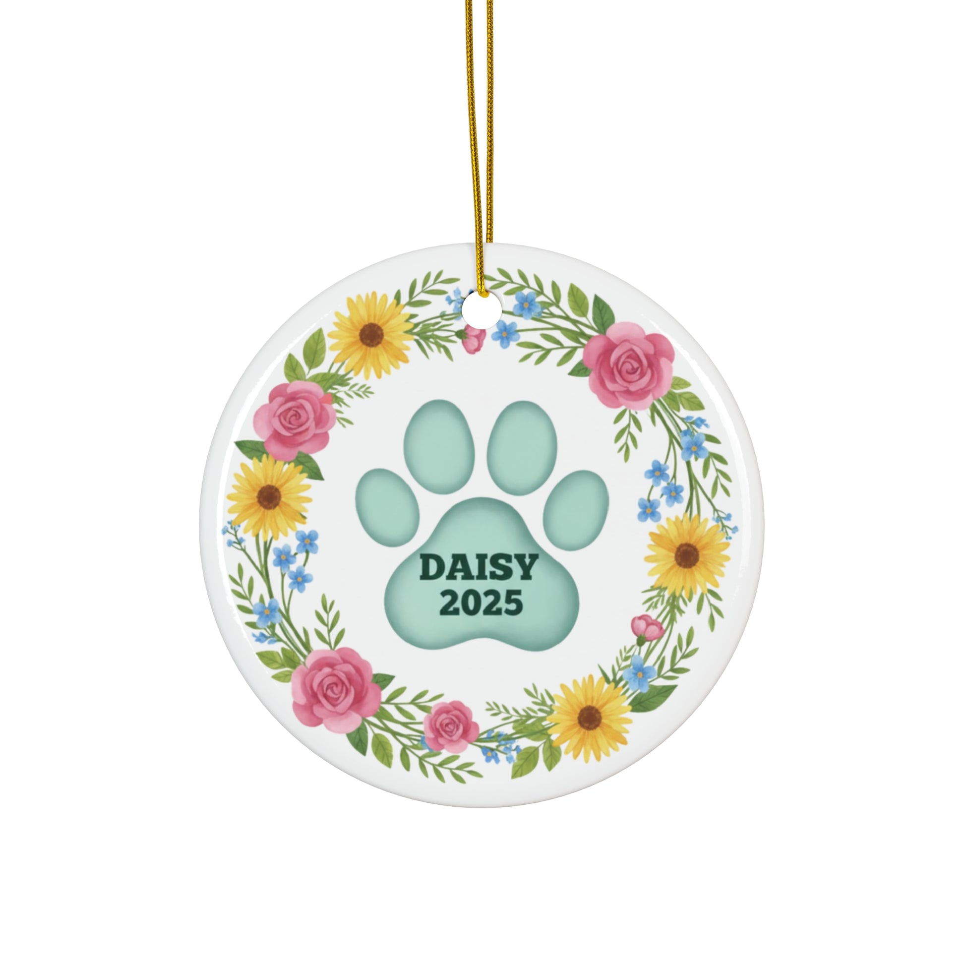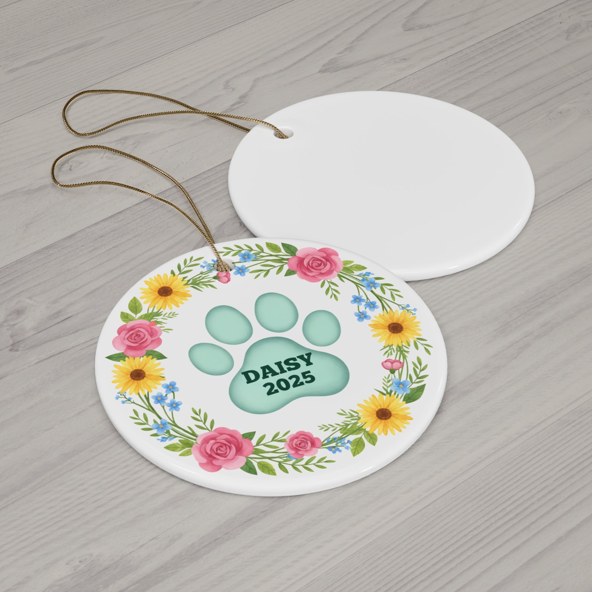 Floral Paw Print Pet Memorial Ornament – Personalized Name & Year Keepsake