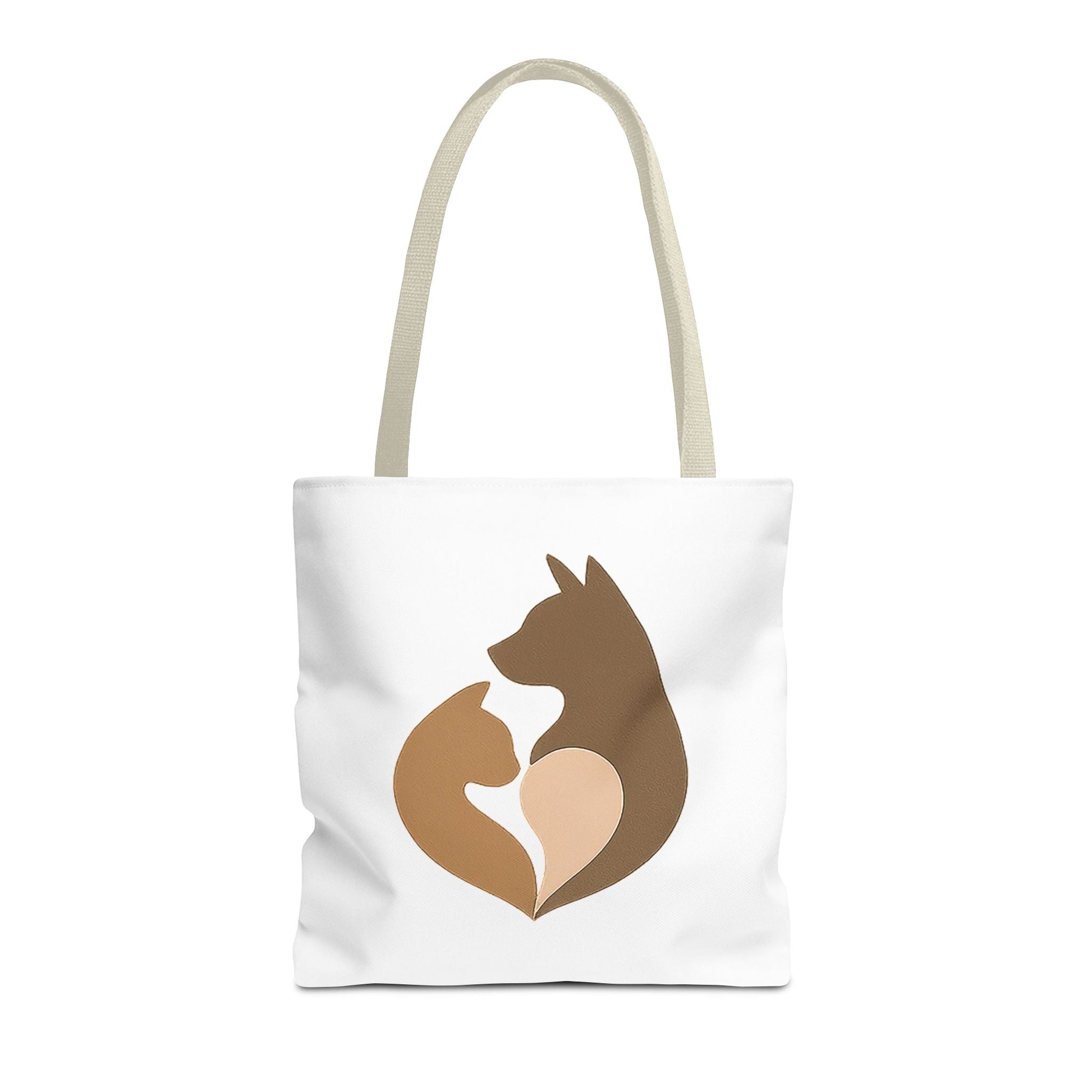 Crafted for style and strength, our Cat & Dog Heart Silhouette Tote Bag elevates your daily carry. The clean, modern graphic—interlocking dog and cat profiles forming a heart—speaks to refined taste and a deep love for pets. Built from premium, shape‑retaining fabric with reinforced seams, this tote stands upright, resists wear, and wipes clean in moments.